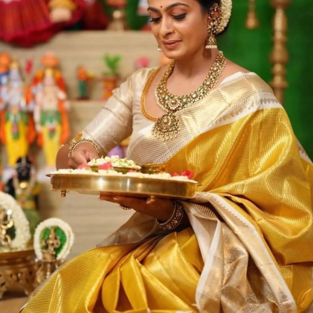 Step into elegance with this luxurious Tissue Silk Saree, known for its lightweight...