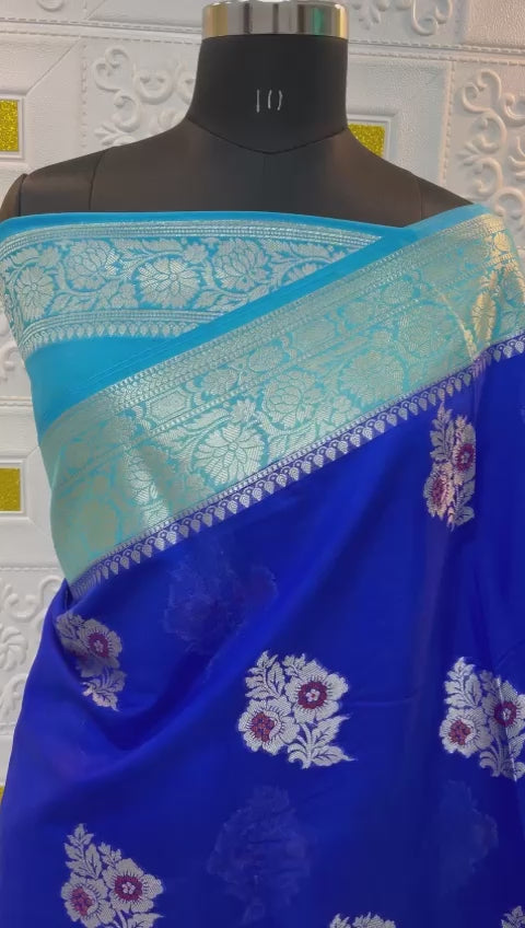 Blue Banarasi Georgette Meenakari Soft Silk Saree