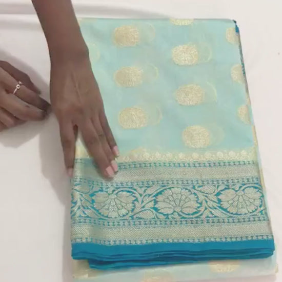 As an industry expert, I present to you our Blue Banarasi Georgette Saree. Made from high-quality Banarasi Georgette fabric, this saree exudes luxury and elegance. Perfect for any occasion, this saree will make you stand out with its intricate design and soft texture. Elevate your style effortlessly with this timeless piece.