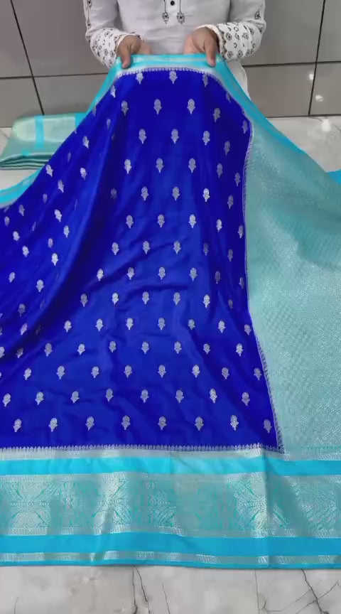 Blue Banarasi Kathan Dupion Silk Saree
