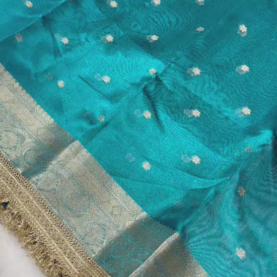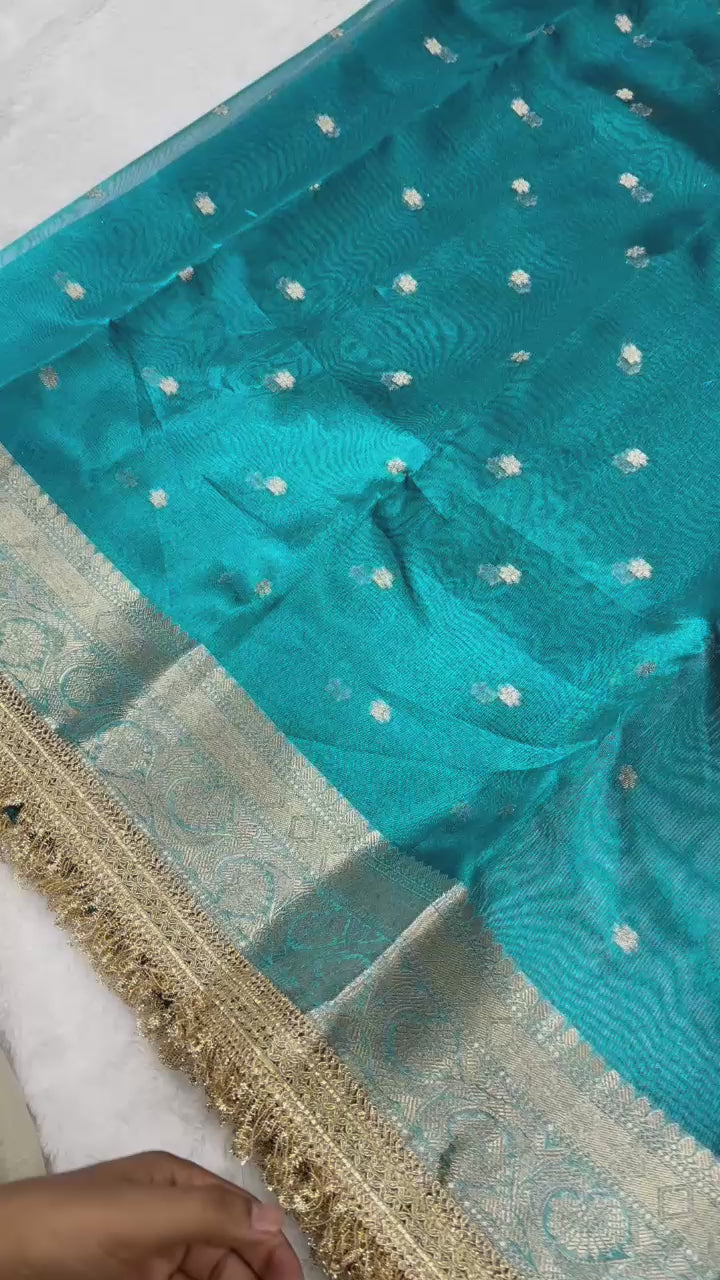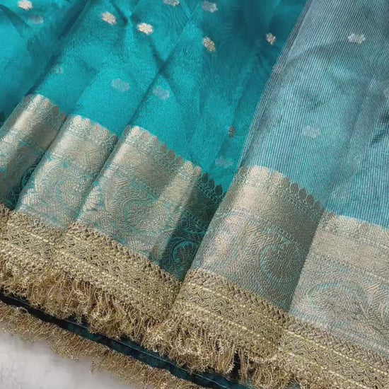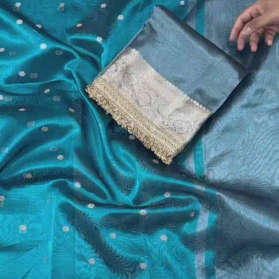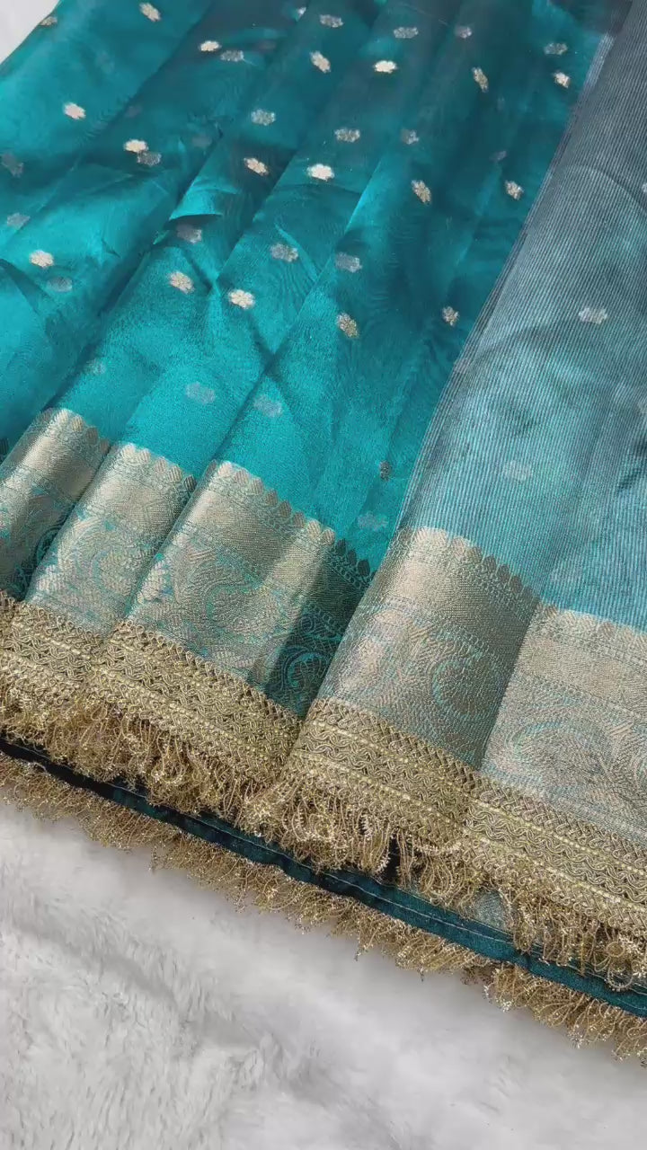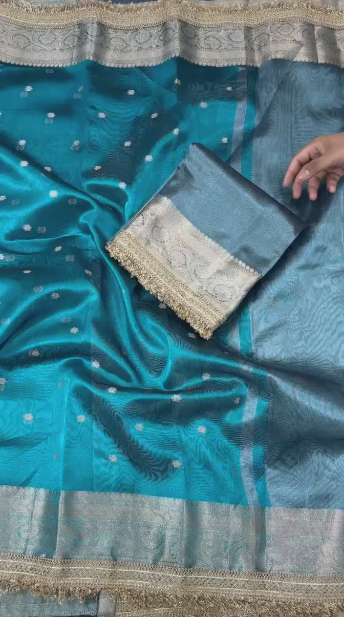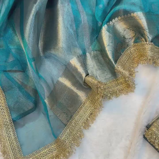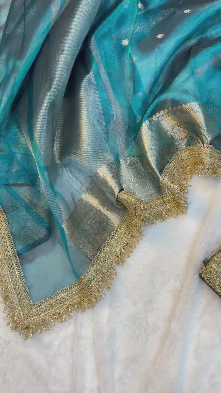Blue Banarasi Tissue Silk Saree With Lace Work