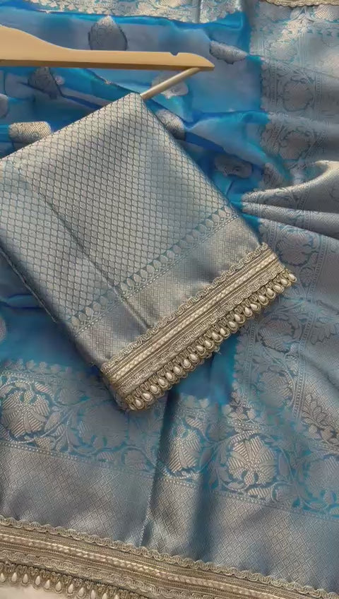 Blue Color Banarasi Tissue Silk Saree With Lace Work