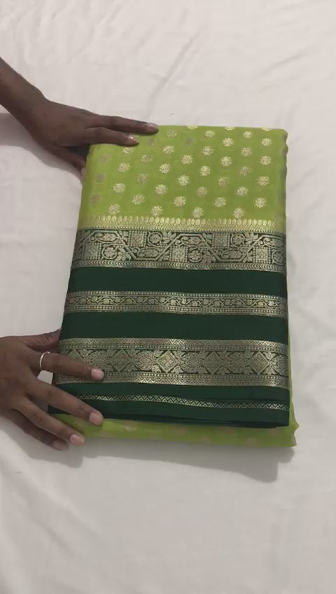 Banaras Brocade Sarees are made of finely woven silk and decorated with intricate designs using zari; this ornamentation is what makes the sarees heavy. Their special characteristics are Mughal-inspired designs/elements such as intricate floral and foliate motifs, such as kalga and bel.