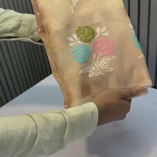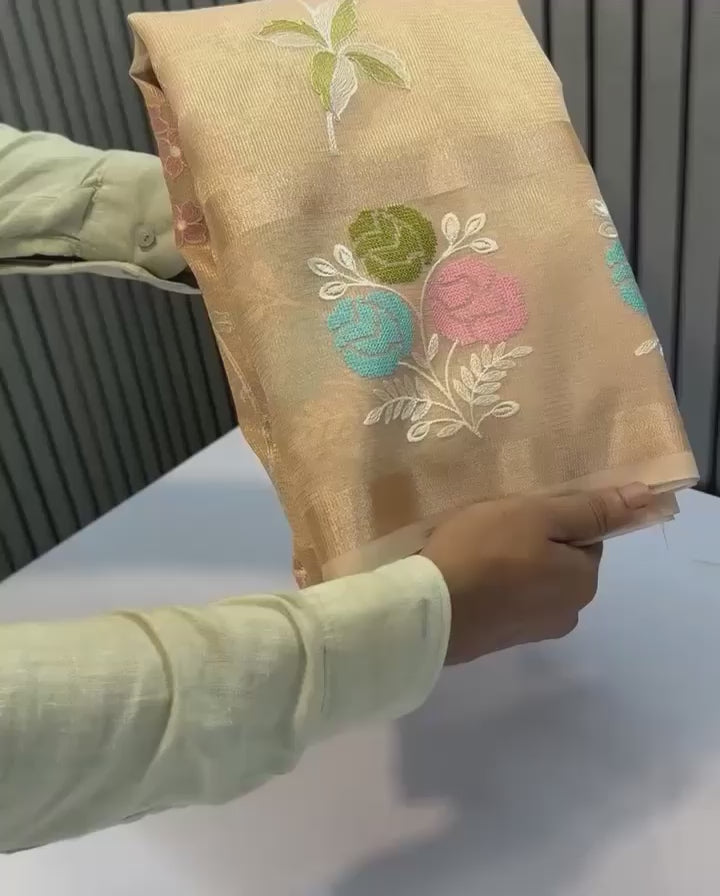 Cream Color Banarasi Embroidery Tissue Silk Saree
