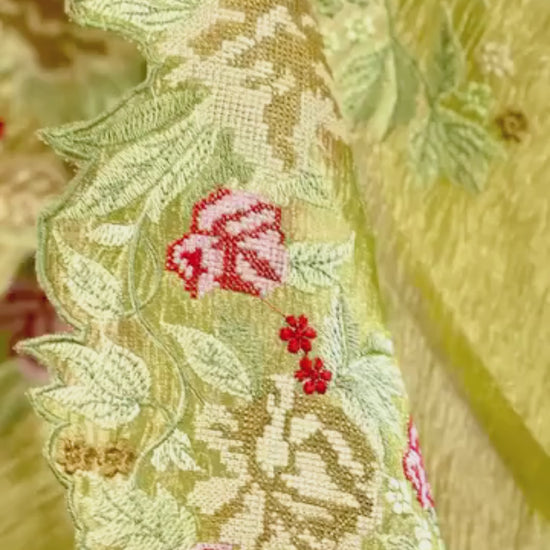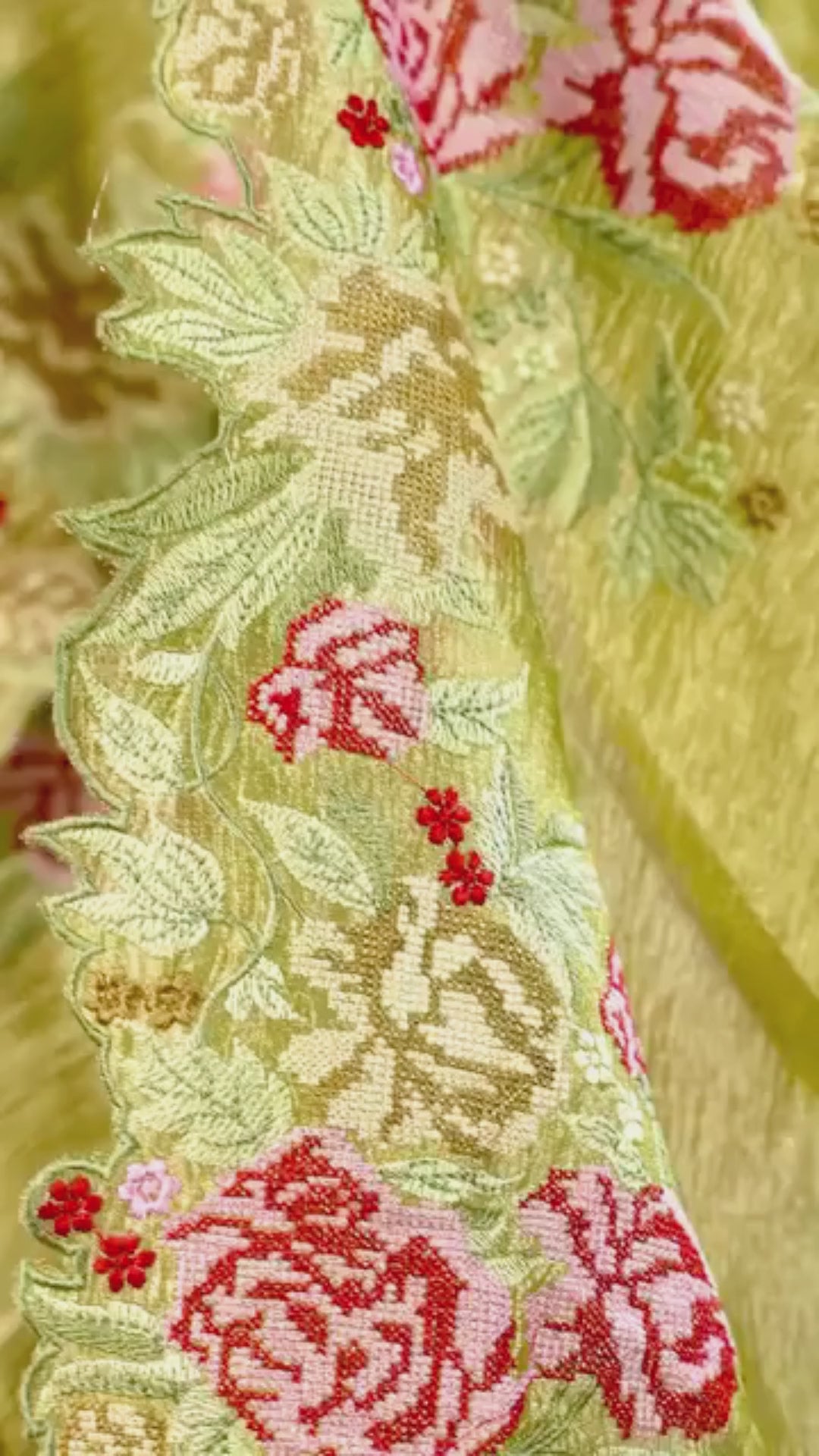 Green Banarasi Crush Tissue Embroidery Cutwork Saree