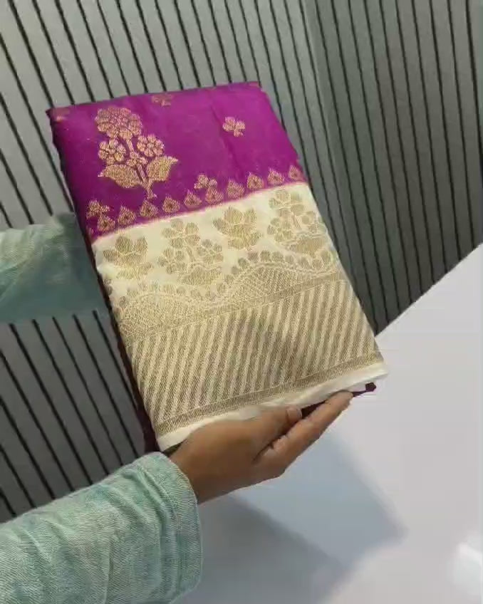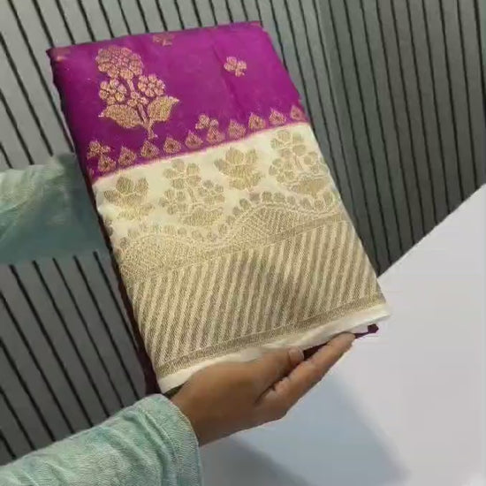 Banaras Brocade Sarees are made of finely woven silk and decorated with intricate designs using zari; this ornamentation is what makes the sarees heavy. Their special characteristics are Mughal-inspired designs/elements such as intricate floral and foliate motifs, such as kalga and bel.