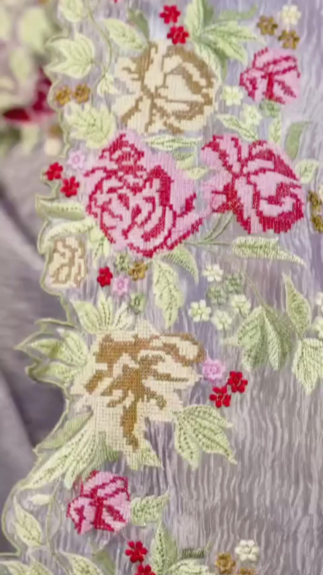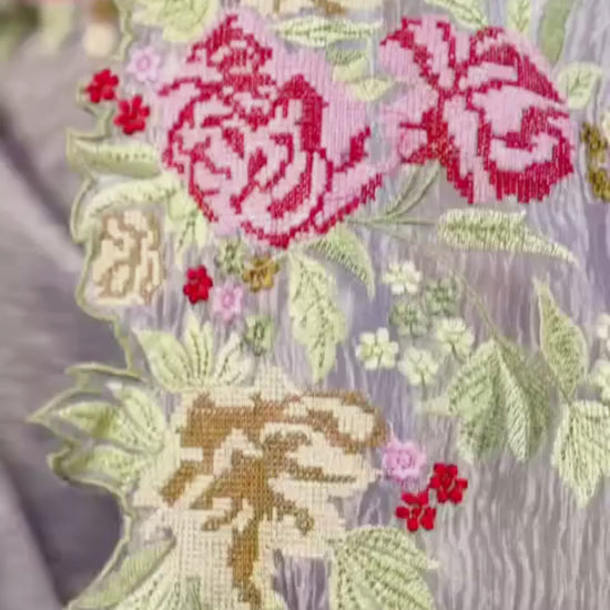 Grey Banarasi Crush Tissue Embroidery Cutwork Saree