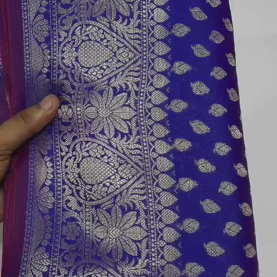 Introducing our Banarasi Kathan Silk Saree, crafted with the finest silk and intricate Banarasi weaving. This luxurious saree boasts a vibrant blue hue and a lightweight, yet durable fabric that is perfect for all occasions. Elevate your wardrobe with this timeless piece.