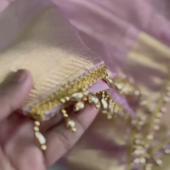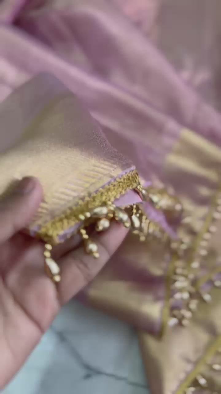 Nayantara inspired Pink Banarasi Tissue Silk Saree with Lace