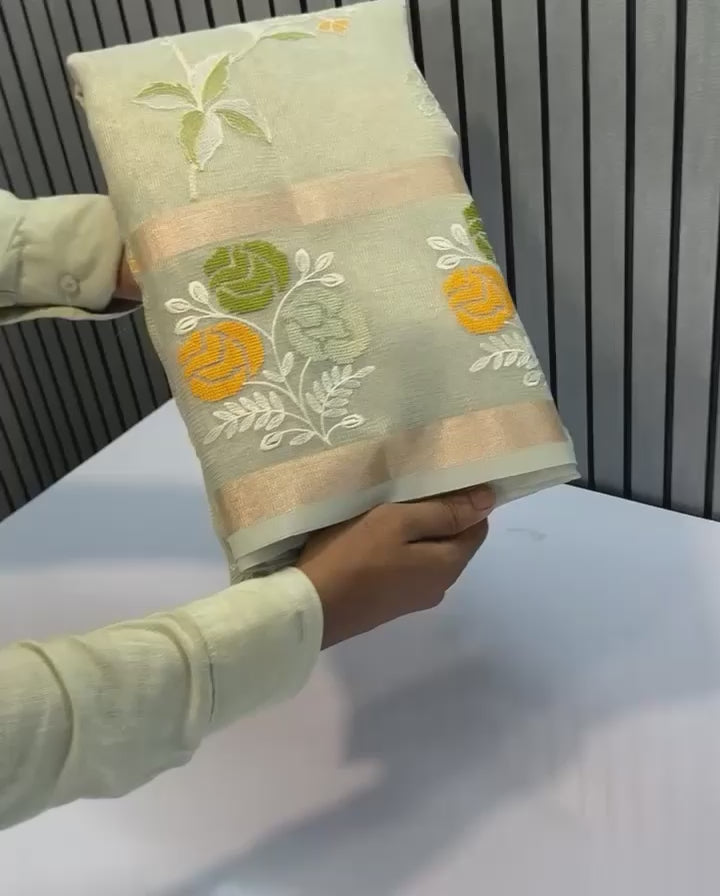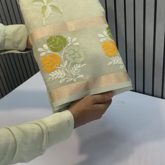 Pasta Green Banarasi Embroidery Tissue Silk Saree