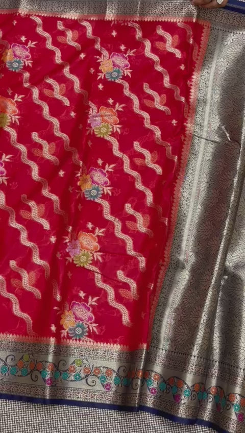 Red Meenakari work Banarasi Saree