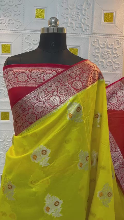Yellow Banarasi Georgette Meenakari Soft Silk Saree