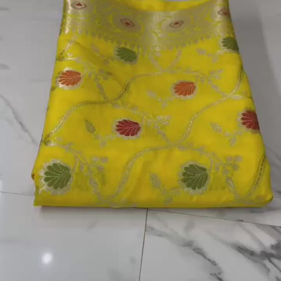 Yellow Color Banarasi Meenakari kathan Soft Silk Saree