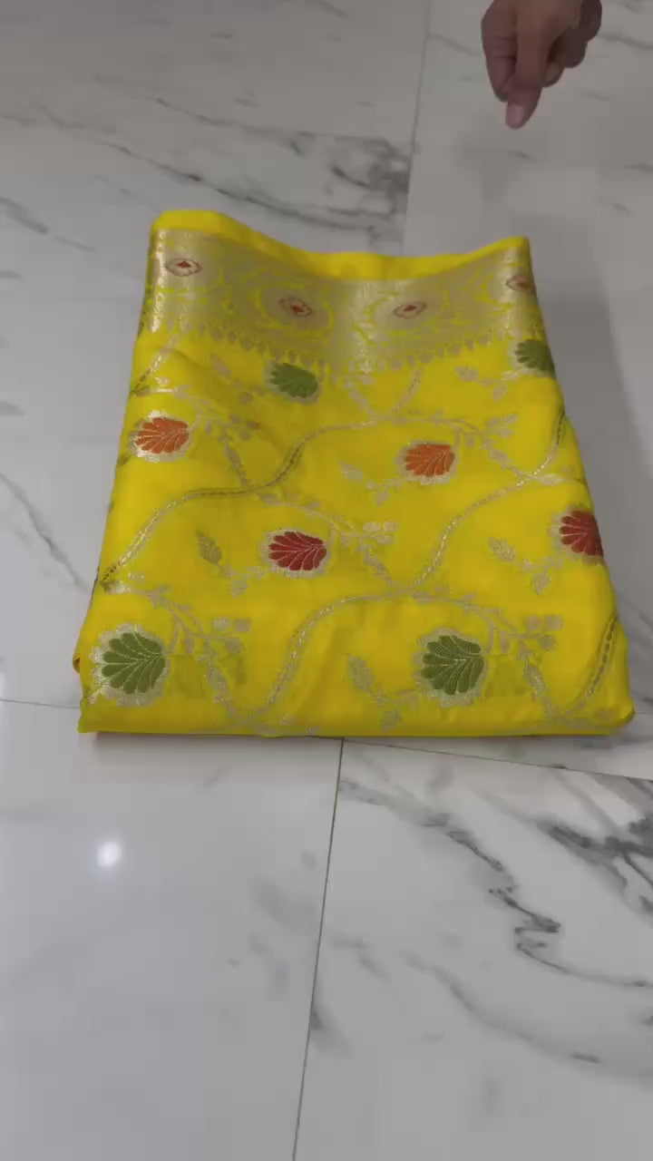 Expertly woven with the finest Banarasi kathan soft silk, this Yellow Color Saree exudes elegance and sophistication. The lightweight material allows for smooth draping, while the rich red color adds a touch of vibrancy to any occasion. Elevate your style with this luxurious saree.